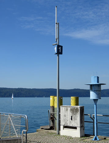 An der Anlegestelle für die Kursschiffe in Überlingen befindet sich auf einem Rohrmast