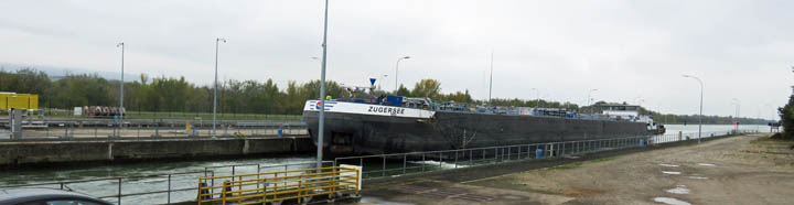 Auf der gegenüberliegenden Seite des Rheinseitenkanals befindet sich eine