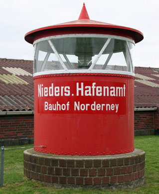 Die alte Laterne des Norderneyer Hafeneinfahrtfeuers steht seit 1999 hinter dem Bauhof